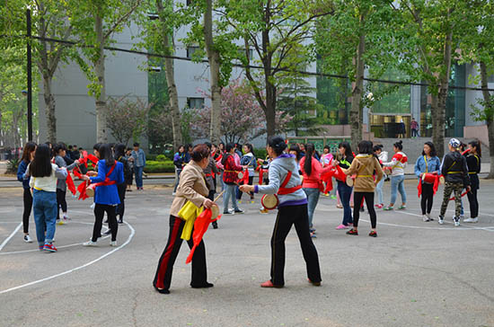 为丰富学生的校园文化生活,让学生感受中华民族悠久的历史文化,培养学生的团结协作精神,4月11日下午,师范/文化创意学院邀请原潍坊市艺术团团长张慧军老师来该院指导腰鼓社团的活动。