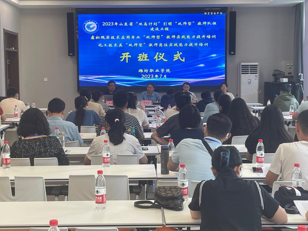 7月10日上午,山东省2023年度“双高计划”引领“双师型”教师队伍建设工程——化工技术类“双师型”教师岗位实践能力提升培训项目开班仪式在星空(中国)国际交流中心嵩山厅会议室隆重举行。学院领导李瑞昌,教师工作部部长、化学工程学院教学负责人、项目组工作人员及来自全省16所高职院校的30名骨干教师共同出席开班仪式。