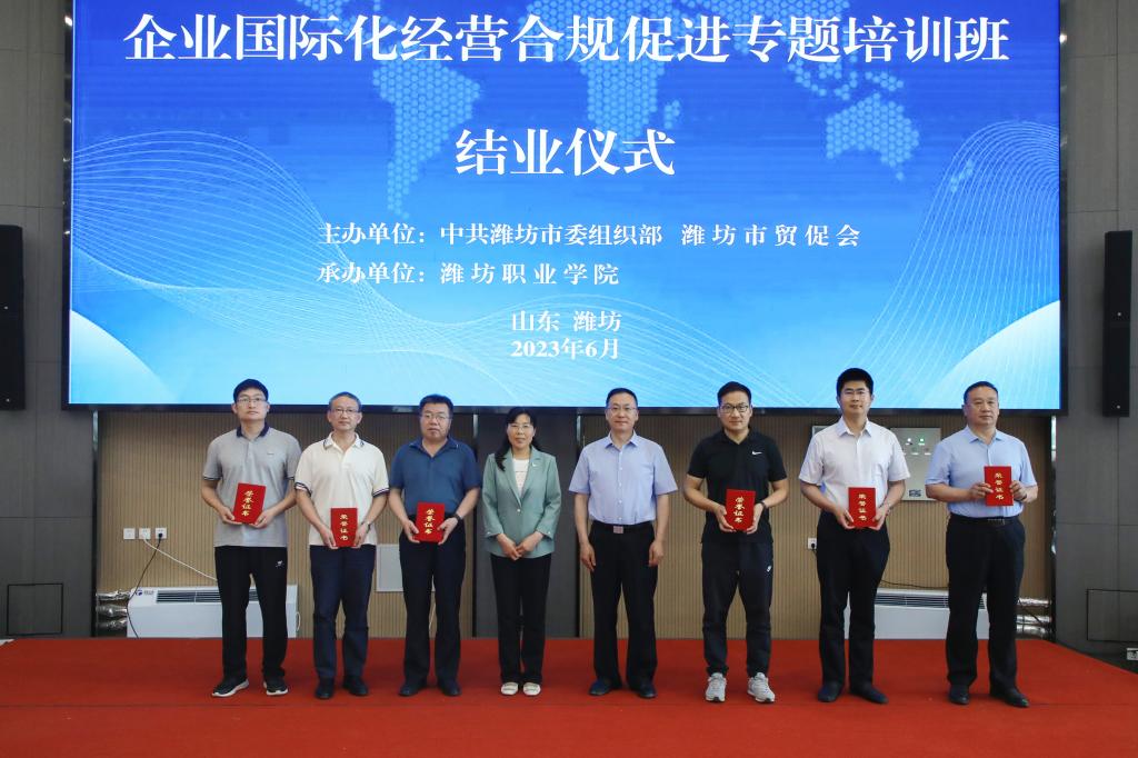 6月2日下午,由中共潍坊市委组织部、潍坊市贸促会主办,星空(中国)承办的“企业国际化经营合规促进专题培训班”在学院国际学术交流中心二楼报告厅举行结业仪式。潍坊市贸促会党组书记、会长胡文星,学院副院长陈美霞出席仪式,全体培训学员参加仪式。