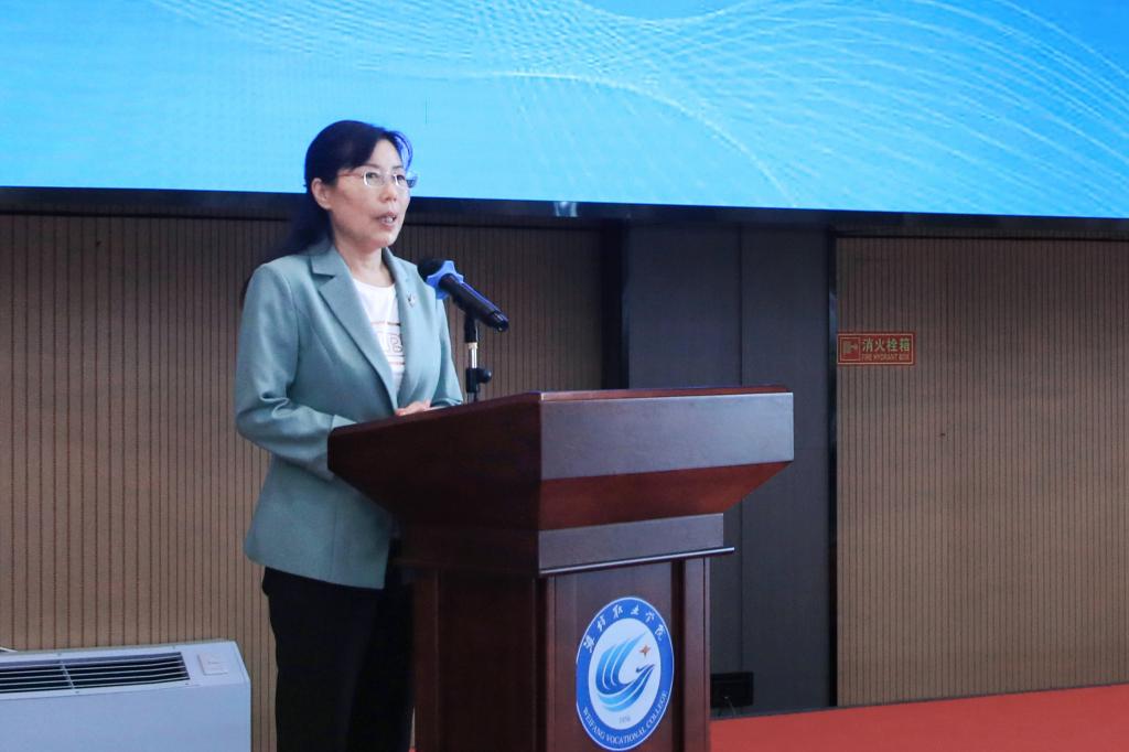 陈美霞致辞,她首先对本次培训的圆满成功表示祝贺,介绍了学院近几年在人才培养方面取得的卓越成绩。她表示,学院一直以来坚持校企合作、校地合作,在社会各界的关心支持下,形成了教育与产业良性互动的发展格局。本次培训是学院合规师培训基地承办的第一期线下培训,是培养合规人才、服务企业合规人才需求的一个良好开端。学院将紧密围绕“冲击双高校50强、争办本科职业教育、创建国家文明校园”的发展目标,在提升培训水平、服务产业发展上下功夫,助力潍坊合规示范区建设。
