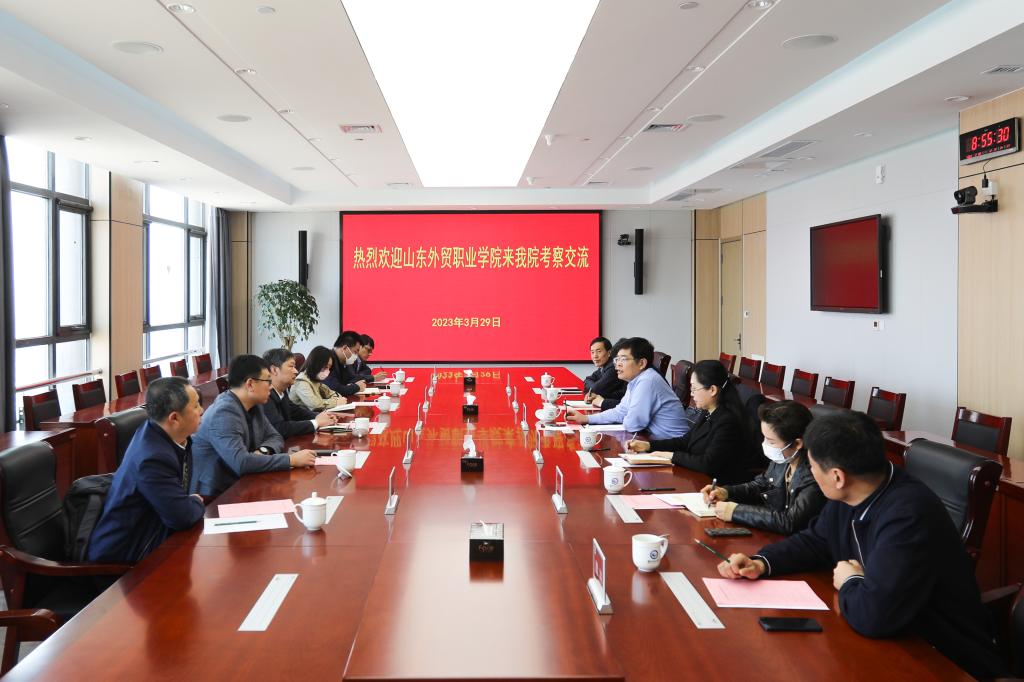 3月29日上午,山东外贸职业学院副书记黄维等一行6人到我院考察交流。学院党委委员、副院长刘德强,党委委员、宣传部部长刘泓蔚会见客人,组织人事处、团委学生工作处、马克思主义学院等部门负责人参加交流座谈。