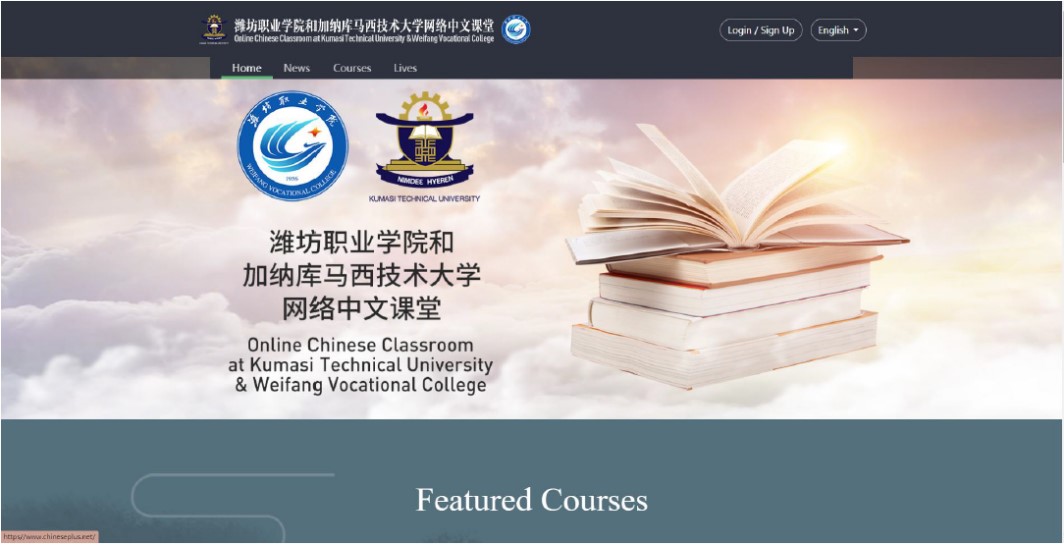 近日,我院与库马西技术大学合作运营的非洲第一家“网络中文课堂”正式开课,课堂共开设5个班,学员150人,均为库马西技术大学热爱中国语言和文化的优秀在校生。“网络中文课堂”课程纳入库马西技术大学课程体系,服务于机电工程、酒店餐饮、文秘和经营管理四个专业的学生。